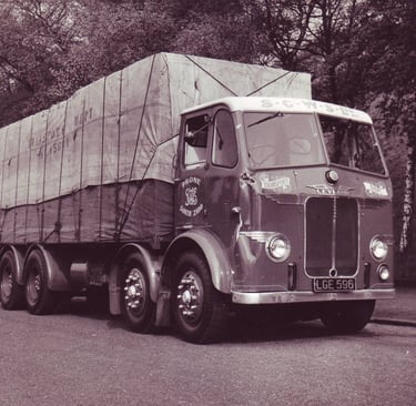 British Lorries The first lorry I sat in when I started work, a Bedford TJ 5 tonner had no heater, of course, but comfortable enough with no draughts! Later I spent a year in an Albion that must have built when Noah was a boy. Noisy, draughty, no heating and little comfort at all. A fringe benefit was easy access to the engine from inside the cab, the exhaust manifold was handy for heating our Scotch Pies on a winter’s day. Meals on wheels? Lorries after that came and went as either comfortable or otherwise. When I started driving I had a 30 Cwt, three-penny bit, petrol BMC, it permanently stank of fuel. The next vehicle I had was a Bedford TK, under 3 Tons ULW and complete with a heater and double passenger seat. I travelled many miles in that great wee lorry. At the age of 21 I then drove all sorts, Thames Trader flats, Bedford S Series removal pantechnicon’s, LAD Albion Reiver’s, 8 wheeled Leyland Octopus’s & Foden S20’s, Ford D Series artics. I left the Co-Op and went to BRS where I drove AEC Mercury’s with fibreglass cabs, and various Atkinson tractors with AEC engines and dual braking systems, vacuum & air. Eventually I got a Seddon 16/4 with an AEC engine which was a good lorry; I drove this unit all over the UK from Wick & Thurso in the north to Cornwall, Kent, the Humber and all points in between. Reliable, the only thing I added for comfort was an old bed blanket my mother gave me to tone down the noise. When they started to go, I had an Ergo AEC Mercury followed by a Mandator, both good lorries in their day. Dare I say, Excellent? I’ll get Brownie Points from my good friend Jim Read for saying that! In between I drove other makes at BRS, all British made, no foreign lorries in those days for us.